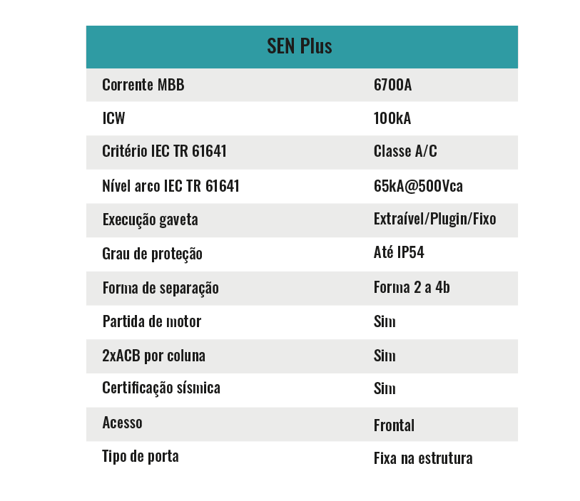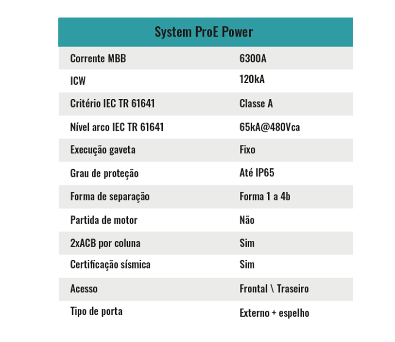 • Grau de proteção: até IP54; Segregação interna: até 4B.