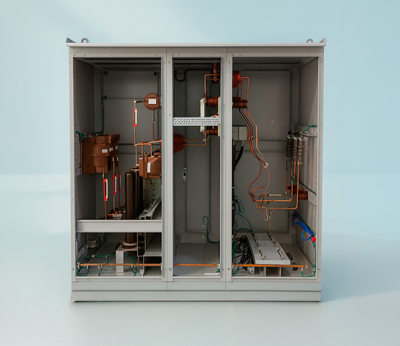 Painel de Média Tensão Isolado a Gás – (GIS) Gás Insulated Switchgear são muito utilizados em locais com espaço limitado ou onde é necessário um alto nível de proteção. São constituídas por celas isoladas entre si, inseridas em um invólucro metálico, ligado à terra, com um gás sob pressão, o hexafluoreto de enxofre (SF6), garante as distâncias de isolamento entre fases obedecendo a Norma IE) -1- 62271-203.
