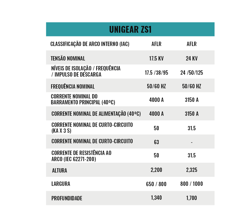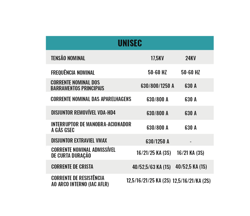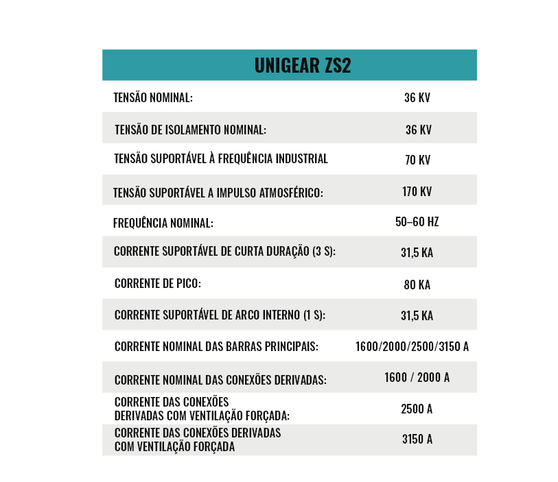 • Grau de proteção: até IP54; Segregação interna: até 4B.